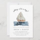 Ahoy, det är en pojke! Sätt fart med det här vackra nautiska babyduschtemat med en vattenfärgsmålning av en blå segelbåt på vatten. Ursprunglig målning och design av Annie Montgomery Design.