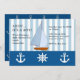 Ahoy, det är en pojke! Att ha en babydusch för en pojke. Allt i blått med detta inbjudningskort. Byt ut informationen mot din egen. En segelbåt, båtankare och information på framsidan. Baksidan av detta platta kort har ett ankare mönster med sepia-stil-bakgrund.