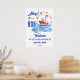 Ahoy, det är ett välkomsttecken för sjöbabyduschen som poster en mall med valar, liten fisk, en båt, ett havstema.