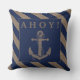 Ahoy! Nautisk ankare med marinblå och burlap Rand Cushion Dekorativ kudde