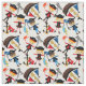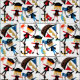 Ahoy piratkopierar tyg, en underbar tygdesignför barn, både pojkar och flickor, som älskar pirater och piratfrakter! Presenterar en piratfrakt, tre olika ungepirater med svärd, och skallen sjunker, ankrar, papegojor och röda krabbor med text som läser Ahoy alla på en vitbakgrund.