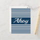 Ahoy-textdesign med marin blå och vit rand-dekoration