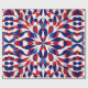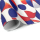 AI Art Red White & Blue Patriotic American Mönster. Det här är en papper omslutning. Utformningen skapades med artificiell intelligenskonst. Den pappra inslagningen är ett patriotiskt amerikanskt mönster i rött, vitt och blått färg. Mönster förenar sömlöst inslag från Salvador Dalis surrealism och Yayoi Kusamas upprepade mönster. Det pappra mönster-höljet har röda och blå former på vit bakgrund. Den färgstarka, röda, vita och blå designen ser bra ut på papper förpackning. Omslagets pappra trycks i USA.