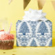 Den här söten som omsluter pappra har en blå Toile Julgran på vit bakgrund. Bild är AI-genererad.