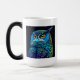 Blå, teal och turkos uggla med gult ögon ai skapade konst.