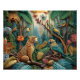 AI-genererat djungellandskap med fåglar, växter och Jaguar.