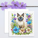 Ai Watercolor Siamese Cat in Flowers