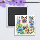 Ai Watercolor Siamese Cat in Flowers Magnet
