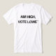 A bold, clean typographic design built around the slogan “Aim High, Vote Lowe.”