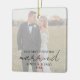 Modern jultid med en enkel design med "gift" i en rustisk stil-manustypografi tillsammans med namn och år över ditt favoritfoto från bröllop med en ogenomskinlig övertäckning. Övertäckningen kan tas bort i designredigeringsverktyget i verktyg. Denna elegant prydnadsföremål ger en underbar gåva till ett nygift par för deras första julgift.