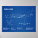 Airbus a380 - Flygplansplan för blåkopia av Teckni Poster