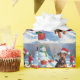 En helgdag med hjärtslitande hund i snö, som bär en julhatt och omges av färgfulla presentlådor. I bakgrunden bygger barn snögubbe bredvid ett Julgran som är täckt av snö och skapar en glatt vinter under. Perfekt för att sprida helgdag och fånga julens magi.