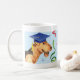 Gratulerar till din favorit student med en gåva med en lycklig Airedale Terrier student som bär en pantpapp mitt i en fjäder av konetti.