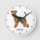 Airedale Terrier Cute Tecknad hund och eget namn Rund Klocka