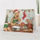 Fånga helgdag glädje att baka med den här härliga scenen med en glad kock omgiven av julgransar och festliga dekorationer. En hjärteberande firande av årstidens sötaste traditioner.