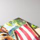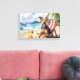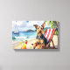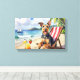 En glad Airedale Terrier som njuter av en solig strandmiljö med livfulla färger och tropiska detaljer. Den balanserade layouten och den måleriska stilen skapar en livlig kustkänsla.