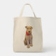 Cotton canvas bag featuring our mascot, Acorn, the airedale terrier.