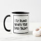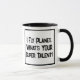 Lustigt slogan på en Tone mugg som säger "Jag flyger flygplan. Vad är din toppen talang?" Två Tone Mugg för en flygpilot. Svart och vit fet text.