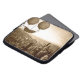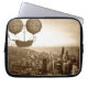 Ett dubbelballongskepp i Steampunk går över hjärtat av Chicago. Sepia tonad