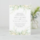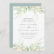 Elegantens botaniska bröllopsinbjudan ramar dina uppgifter om bröllop med en gräns av ren pastellfärgad löv i blek, coola gröntar. Anpassa med din ceremoniinformation i chic grått-bokstäver.