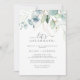 Denna mjölkgrönare och guld löv låt oss inbjudan är perfekt för en modern förlovningsfest, bröllop efter party, pension, studenten eller alla lycklig. Den botaniska utformningen av eleganten har ljus- och mjölkfärgen eukalyptus accentuerad med vismisk löv i guld glitter.