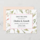 Skadblommor och grönt mönster i rosa är känsliga för denna elegant och det klassiska bröllop spara datum-kortet Koordinerat för insamling och tillbehör till det botaniska bröllop i Rosa Meadow. Lägg till ditt namn med hjälp av mallen. Reverse ligger i en rosa färg.