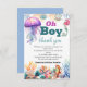 Oj, pojke under havets dusch i pojke. Bjud in vattenfärgsdjur som sjömaneter, sjömansfisk, stjärnfisk, korallrev, Sjöjungfru
