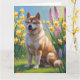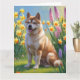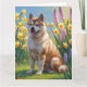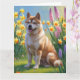 Akita Hund Vårblommor Målning Kort