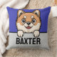 En personlig Akita Inu dekorativ kudde för hundälskare, med en söt Akita Inu-marionett som tittar över en ledtext och en anpassningsbar textruta där du kan skriva i hund namn eller någon annan text. En anpassade i roligt till Akita Inu mamma, pappa, tränare eller hund älskare.