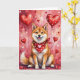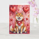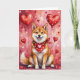 Akita Inu Valentine Dog Sitting with Hearts Red Kort
