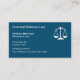 Ett enkelt affärskort för en advokat för straffrätt med en av rättssymbol som du kan ersätta med en egen logotyp eller grafik och en enkel rättslig temalayout som du kan anpassa onlinen efter. Designad för advokater som utövar straffrätt, straffrättsligt försvar eller borgen i fält.