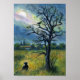 Akrylmålning, Katt & Bird & Måne Poster
