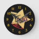 Klocka med dansare och ord Dance med stor gult stjärna och guld på svart bakgrund. Färg i bakgrunden och numren kan anpassas. Röd virvel kan tas bort.