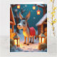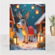 En fridfull åsna med en röd sadelfilt står bland de lysande lyktorna och stabila stjärnor i denna varma 3D-pappra konstdesign. Perfekt för kreativa julkort.