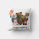 Fira födelsedagar med Grattis på födelsedagen Bear Trio Dekorativ kudde (16" x 16"), perfekt för barn, vänner och björn i samma utsträckning som älskare. Den här dubbla kudden har en charmerande framdesign av en polar med ballonger, en brunbjörn med färgstarka gåvor och en panda med ett "I Kärlek You"-tecken, som omger en glad födelsedagskalas. Baksidan visar ett hjärtskärande budskap "Gör en önskan" med lite björn, ballonger och kaka - och tillför en magisk beröring till vilken firande som helst.