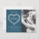 Mistletoe botaniskt indraget konst hjärtkrans blått och vitt gift julkort med eget foto på ena sidan. Anpassa med ditt eget meddelande inbjudan till ett party eller ett evenemang efter bröllop, namn och ditt foto. Att skicka lite kärlek som mistletoe är en symbol för kärlek och har kopplingar med livskraft och bra hälsa. Ursprunglig linje teckning och utformning av Sarah Trett för www.mylittleedenweddings.com endast på Zazzle.