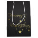 Elegant och modern guld-God jul typografi med gyllene stjärnor i dekoration.