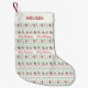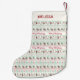 Personlig julstrumpor med ett upprepande mönster i bakgrunden, i en ful julsötare stil. Mönster består av strumpor, julklappar bollar, stjärnor och snöflingor. Med den upprepade God jul-texten i rött. Roligt och festlighet.