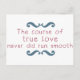 "äkta kärlek har aldrig skött springa." Ett klassiskt romantiskt citat från Shakespeare's A Midsommar Night's Dream i en mjuk rosa och blå design.