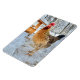 Den här magneten har en vacker brun brunkolskyckling som pockar framför hennes hem efter en snöstorm.