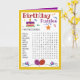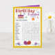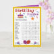 Unga barn kommer att bli entusiastiska över att få ett pussel med roligt från dig. Pusselkortet är dekorerat med illustrationer av en kaka, ballonger, födelsedagskort, musik noter, hjärtan, sol, party hatt och en omsluten gåva. Perfektens aktivitetskort för ditt barn, brorson, systerbarn, barnbarn, student, klassrum eller gudbarn. Här ingår spel: Hitta tolv ord, Punkt till punkt, Hitta fem delara godiset och en Party maze. Inuti hälsning: Grattis på födelsedagen! Det finns utrymme att lägga till ett barns namn på insidan av högerna överst.