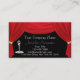 Illustration av en prestation eller teaterscen med röda gardiner och svart bakgrund. Har också en illustration av en gammal stil-mikrofon. Du kan ändra bakgrunden färg till valfritt färg med knappen Anpassa den och Redigera-menyn. Underbart affärskort för skådespelare eller skådespelare, sångare, magiker eller andra scenkonstnärer och teaterartister.