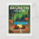 Akureyri-Islandets reseaffisch, med en campingbrand under det vackra norra ljus.