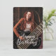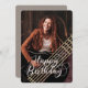 Anpassningsbarnas födelsedagskort med ett foto inramat av varma brandy-polygoner och akustisk gitarr med och "Grattis på födelsedagen" i vackra manustypografi. Det här fotokortet passar bäst för guitarist, musiker, gitarr älskare eller musik älskare. Lägg till ett foto för att prova det. Finns i flera storlekar och stilar.