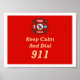 Denna poster är dekorerad med Räddingen Fire Malese Kor och ord "Behålla Lugn and Dial 911".