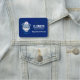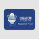 Ett namn bricka med en söt illustration av en blå björn som bär en sjukhatt med lite hjärta på den. Även med en skyddande ansikte-mask och med ett blått streck.