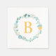Akva och Gult Utandning av monogrammad Blommigt Pappersservett
