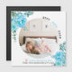 Akvablå blommor Bästa mamma någonsin Mors dag foto magnetkort. En vacker design som visar ett foto, akvablå akvarellblommor i övre vänstra och nedre högra hörnet, texten "BÄSTA MAMMA NÅGONSIN" i svart och blått och ett skärt hjärta. Fotografi © Storytree Studios, Stanford, CA