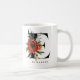 Vacker anpassningsbar monogrammugg. Den har akvarellbokstav E blomster monogram av röda anemone, vallmo och grönska. Anpassa denna monogrammugg genom att lägga till namn, datum eller meddelanden. Denna botaniska monogrammugg är perfekt som en personlig gåva.