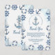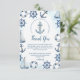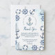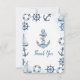 Det här super söta tacksamhetskortet har en underbar nautisk känsla – perfekt för att säga tack efter någon speciell händelse! Det har en handritad akvarellkant med skeppshjul, ankare, livräddare och segelbåtar i olika blå nyanser, och ett coolt randigt ankare i mitten med en liten segelbåt på toppen och lite vacker text. De mjuka blåa och vita färgerna ger det en fräsch, strandliknande känsla, vilket gör det perfekt för alla som älskar havet!